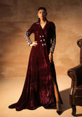 A masterstroke of regal tailoring and wild couture artistry, this deep plum princess-cut Spencer-style coat with a dramatic tail is designed to command attention with structure, strength, and opulence. The sharply sculpted princess silhouette enhances the form, while the extended tail adds theatrical movement and royal drama.