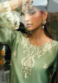 Paired with a beautifully structured Farshi shalwar—a nod to vintage silhouettes—and a pure organza dupatta adorned with embroidery that echoes the shirt’s fine detailing.